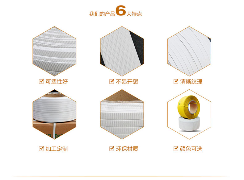 2、生產(chǎn)設(shè)備和熟料的技術(shù),經(jīng)高靜密儀器嚴(yán)格檢測(cè),保證出廠的產(chǎn)品穩(wěn)定品質(zhì),保證打包帶厚度均勻。彎曲度小,送帶順暢。